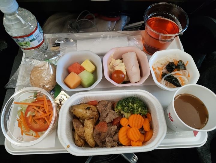 羽田空港発11/30 18:05ほぼ定刻通りに出発!機内では事前にダウンロードしたネトフリの映画見てました。機内食は2回出ました。