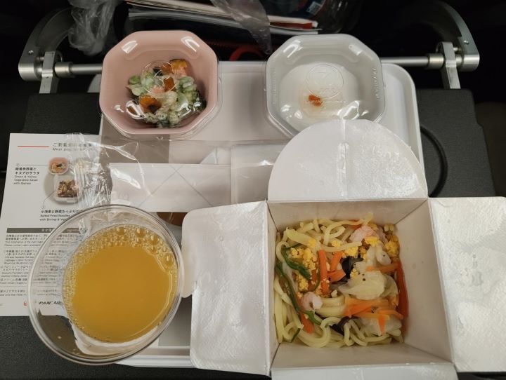 羽田空港着12/6 17:20(ラスベガス時間 12/6 0:20 )行きよりも2時間くらい長くて11時間くらいのフライトでした。帰りも2回機内食が出ました